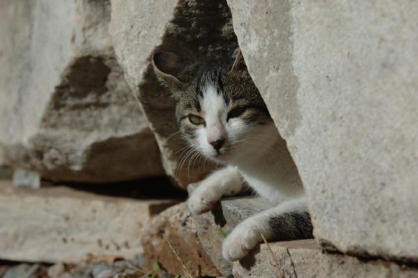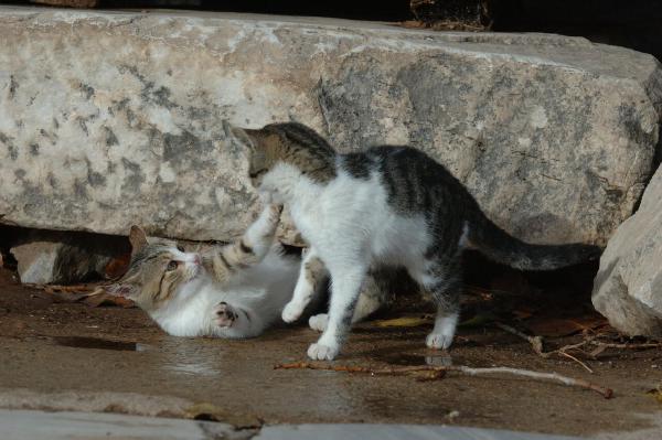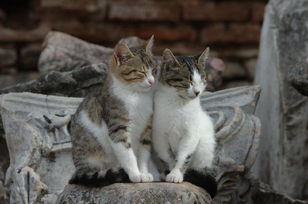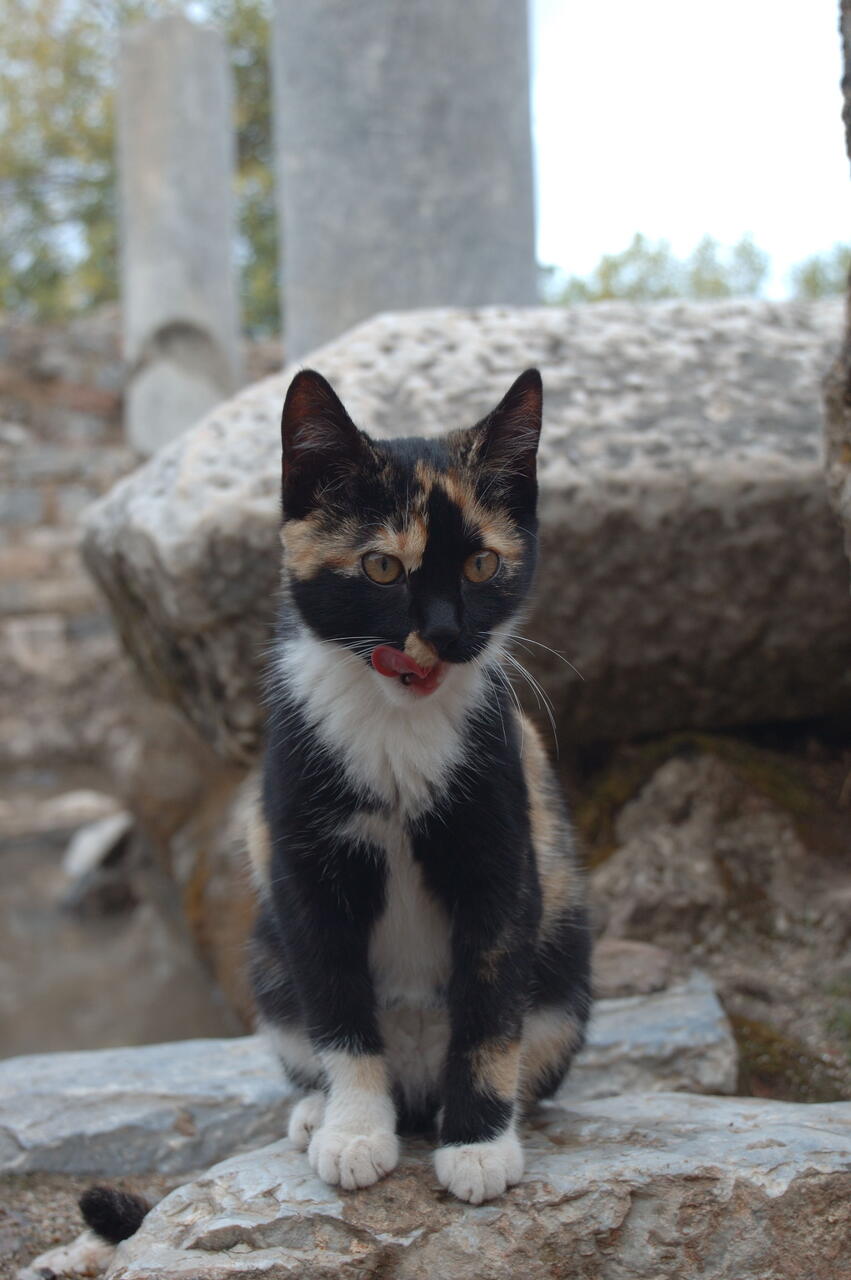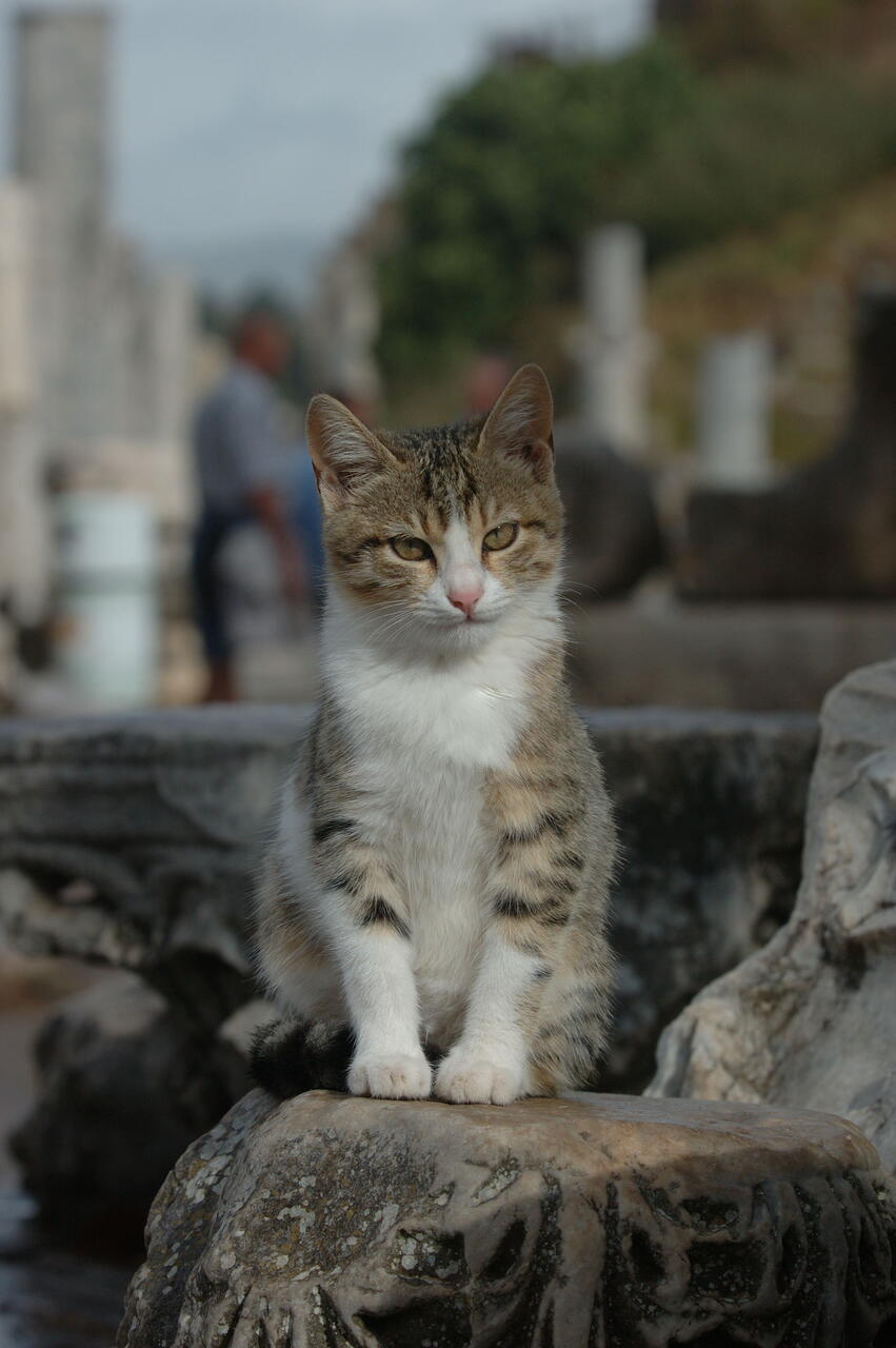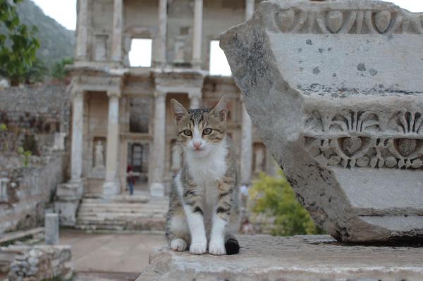 Some cats ruthlessly exploiting the tourists attracted to all the old roman tat at Ephesus.